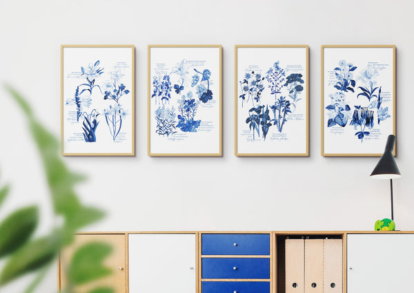 BOTANICAL ROSARY POSTER IN BLUE - COMPLETE